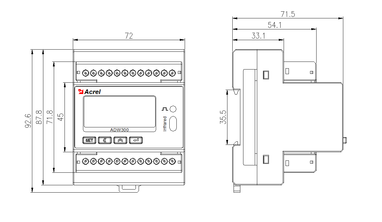 电表采用35mm导轨式安装,现场可以不断电安装,自带开口式电流互感器,支持从一次电缆或者原有5A二次电流回路取样。